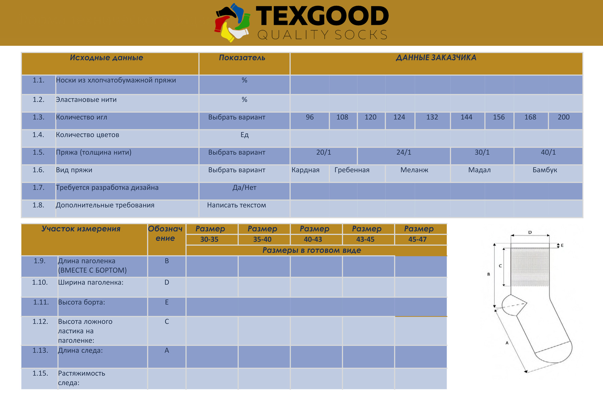 ООО «TEXGOOD» специализируется на производстве чулочно-носочных изделий. Наша компания равно ориентирована